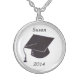 A vintage graduation cap appears on a personal memento necklace, ready to customize with your name and date.