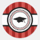 Graduation Caps Stripes Party Favor Sticker (Maroon Red/ Dark Burgandy / White / Black)...This classic Graduation sticker is the perfect addition to the graduation party invitations inviting friends and family to a graduation party. It's also a great party favor sticker. Use it on goodie favor bags. Put them on toothpicks and put them in graduation cupcakes. Whether you're celebrating a Kindergarten (Kindergarden) Graduation, High School Graduation, Law School (JD) Graduation, Med (Medical / MD) School Graduation, Business School Graduation (MBA), Nursing School (RN) Graduation, Dental School (DDS) Graduation, College Graduation, Pharmacy School Graduation, Veterinary (Veterinarian) School Graduation, or Grad School Graduation (PhD / Masters Degree), this sticker is perfect to mark the occasion. The little graduation cap is too cute. See WindyCityStationery.com for our complete line of "Graduation Cap Stripes" postage stamps and matching "Stripes" invitations and announcements as well as our lines of invitations, save the dates, postage stamps, note cards, and more for every occasion.