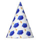Cute and simple graduation party hat with a pattern of blue graduation caps with a gold tassel. Great for your graduation party! Illustrated and designed by Patricia Alvarez.