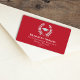 This design features a graduation graduate grad return address, a classic traditional laureate mortarboard, simple minimalist minimal laurel leaves, for high school or college seniors, with school colors cardinal red template, for a graduation grad party envelope seal, a graduation invitations announcement seal, a classy elegant graduate laurel leaves, a simplistic simple clean modern style, a simple basic typography style