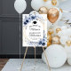 Watercolor Navy Blue Flowers Graduation Celebration Welcome Sign. Matching items available.