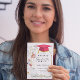These colorful wildflowers have a pink grad hat frame, and the graduation ceremony invitation features a pink and gold grad hat and black custom typography.