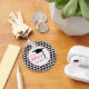 A keychain featuring a background design of black houndstooth. Text "Class of 2011" with black graduation cap illustration inside pink frame. Personalize with your name.