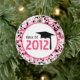 A graduation ornament featuring a pink & Black paint splatter background. Design inside circle outlined in pink reads "Class of 2012" and features a graduation cap.
