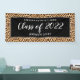 Decorate for your graduate party with this Graduation Class of 2022 Leopard Personalized Banner. It has a modern design with an animal print background. The bold white text is "class of 2022" in trendy calligraphy script lettering and you can customize the graduation year if needed by following the template made available. the text is "congratulations" across the upper front of banner. Personalized with name on the lower center.