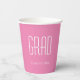 Graduation Class of 2025 pink and white paper cup with a minimalist design. With white customizable lettering, you can add your own text. A simple party addition for that special party for your grad.