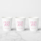 Graduation Class of 2025 pink and white paper cup with a minimalist design. With pink typography customizable lettering, you can add your own text. A simple party addition for that special party for your grad.