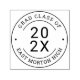 This round graduation stamp features "Grad Class Of" curving along the top, the graduation year in bold at the center, and the school name curving along the bottom. Personalize with the graduation year and school name for a fun way to mark graduation party invitations, thank you cards, announcements, and keepsake packaging. A thoughtful gift for the graduate or grad party host.