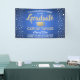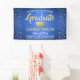 Add a personalized touch to college or high school graduation party decorations with this custom blue, gold and white banner. All text is simple to customize to include name, class year, school, degree, honors, inspirational quote, or other text of your choice. Design features a royal blue faux brushed stainless steel background, faux foil mortar board cap, festive confetti dots, stylish modern typography, and handwritten style script calligraphy. Please note that gold is printed color, not metallic foil. This party sign is an elegant way to celebrate the special day. Congratulations to the graduate!