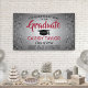 Add a personalized touch to college or high school graduation party decorations with this custom red, gray and black banner. All text is simple to customize to include name, class year, school, degree, honors, inspirational quote, or other text of your choice. Design features a silver grey faux brushed stainless steel background, black mortar board cap, festive confetti dots, stylish modern typography, and handwritten style script calligraphy. Please note that silver is printed color, not metallic foil. This party sign is an elegant way to celebrate the special day. Congratulations to the graduate!