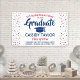 Add a personalized touch to college or high school graduation party decorations with this custom red, white and blue banner. All text is simple to customize to include name, class year, school, degree, honors, inspirational quote, or other text of your choice. Design features a white background, blue mortar board cap, festive confetti dots, stylish modern typography, and handwritten style script calligraphy. This party sign is an elegant way to celebrate the special day. Congratulations to the graduate!