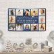 Add an elegant personalized touch to college or high school graduation party decorations with a custom 12 photo collage banner. The pictures and all wording on this template are simple to personalize, and colors are easy to change with the Zazzle design tool. The navy blue and white design features trendy handwritten script calligraphy, chic modern minimalist typography, and twelve favorite photos of your choice, such as senior pictures or images from the commencement ceremony. This large graduation party sign can be hung on a wall to welcome guests to the celebration or used as a fun and stylish photo booth backdrop. Congratulations to the graduate!