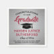 Add an elegant personalized touch to college or high school graduation party decorations with these custom red, gray and black paper napkins. All text is simple to customize. Design features a grey faux brushed stainless steel background, black mortar board cap, stylish modern typography, and handwritten style script calligraphy. Please note that silver is printed color, not metallic foil. Congratulations to the graduate!