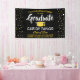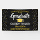 Add a personalized touch to college or high school graduation party decorations with this custom black and gold yellow banner. All text is simple to customize to include name, class year, school, degree, honors, inspirational quote, or other text of your choice. Design features a mortar board cap, festive confetti dots, stylish modern typography, and handwritten style script calligraphy. Please note that gold is printed color, not metallic foil. This party sign is an elegant way to celebrate the special day. Congratulations to the graduate!