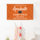 Add a personalized touch to college or high school graduation party decorations with this custom orange, white and black banner. All text is simple to customize to include name, class year, school, degree, honors, inspirational quote, or other text of your choice. Design features an orange background, black mortar board cap, festive confetti dots, stylish modern typography, and handwritten style script calligraphy. This party sign is an elegant way to celebrate the special day. Congratulations to the graduate!
