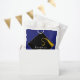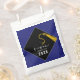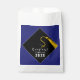 Creative graduation congrats party favors gift featuring classic black cap and gold tassel on a royal blue background. Edit text to add senior class year.