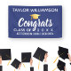 Modern yet simple graduation banner featuring a faux gold graduation cap, your student's name, school, class of year and the word Congrats in a fun script font. Easily change the background color to match your school color. Perfect for graduation parties and celebrating your graduate's big day!