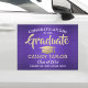 Add a personalized touch to a college or high school graduation car parade or drive by celebration with this custom purple, gold, and white car magnet. All text is simple to customize. Design features a purple faux brushed stainless steel background, faux foil mortar board, stylish modern typography, and handwritten style script calligraphy. Please note that gold is printed color, not metallic foil. This outdoor party sign is an elegant way to celebrate the special day. Congratulations to the graduate!