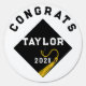 Unique graduation party sign for your favorite graduate featuring black and gold cap. To personalize, edit text to add name and senior class year.