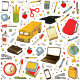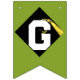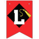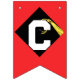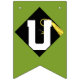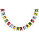 Graduation party congrats decoration featuring black and gold grad cap on red, gold, blue and green backgrounds.