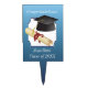 Congratulate the graduate. Mortarboard and diploma with editable text on a blue background.