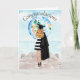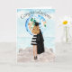 Congratulations. Graduation congratulations. Nautical beach with girl standing on dock looking at the world globe.