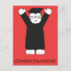 A white fluffy cartoon cat in a graduation outfit on a red background, with the word 'Congratulations' underneath.