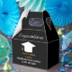 This modern custom senior graduation party favor box features the high school graduate name elegant gold on the chic black background for the class of 2026. Customize with your high school, college, or university name and year for a great graduation keepsake for seniors.