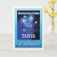 Making it to graduation is like a roller coaster ride. Full of ups and downs and the occasional scream! This card proudly honors that ride. Showcasing the graduate's name and turning this graduation card into a unique keepsake. Because, let's face it, they've survived exams, all-nighters, and likely more stress than a cat at a dog park. This festive card reads, "Congratulations, Graduate," and features an area to personalize the graduate's name. Blue stars and fireworks will surround their name. Making the graduate feel like a star. The inside's framed in light blue and also customizable. You can keep or change the greeting. Add the graduates' and the sender's names for a personal touch. Send this graduation card adorned with fireworks to celebrate their ride. © TANITU by Tanya Lumere
