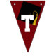 Graduation party congrats decoration featuring black and gold graduation caps on a maroon background.