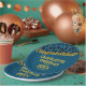 Navy Blue and Gold school colors, black graduation caps thrown in the air for him or her. Nice graduation party personalized paper goods for a grad party for a graduate from a high school, college, or university with school colors of blue and gold. Personalize with graduation year, name of the graduate, and the name of the school.