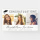 Elegant graduation party welcome banner and photo backdrop prop to celebrate the graduate featuring "CONGRATULATIONS" on top next to an illustration of a graduation cap, a three photo collage, her name in a trendy stylish script, and her class year and school name in simple modern typography.