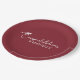 Modern and stylish, yet simple red and white graduation cap/ graduation party paper plates customized with the name of the guest of honor. The background color of these paper plates is customizable so design them to be your school colors if you would like. Check our shop for other colors and font styles.