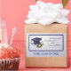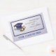An image of a graduation hat and diploma with a navy border on a soft gray-blue background is best to give to anyone celebrating graduation. Perfect for the graduates and remember the past as you enter the new stage of life.