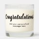 Celebrate your graduate's achievements with our beautifully crafted scented graduation congratulations candle. Adorned with black script typography, this candle is sure to make the perfect gift for your beloved graduate. The candle's delightful scent will fill the room with a warm and calming aroma, creating a soothing atmosphere for your graduate to bask in their accomplishments. With a blank space available for easy personalization, you can add your own unique touch to turn this candle into a cherished keepsake for years to come.