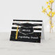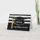 The contrast of the black and white stripes is very stunning. This card will stand out with the black cap, outlined in white, with a yellow gold tassel. Colorful confetti adds to the celebration of a graduation. Personalize with the name of the graduate!
