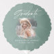 Modern minimal sage green script photo elegant graduation announcement party decor. Part of a modern collection.