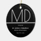 A keepsake ornament for a doctor’s graduation with a black and white design. It includes the MD degree abbreviation, name, specialty, and date/year. Simply customize this ornament, add it to your cart, and celebrate this major achievement.