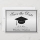 Plain white envelopes are included with paper invitations and will come to fit the invitation size you select. If you don’t need the envelopes, you may choose to not receive them by selecting the dropdown below "Envelopes" and choosing "None." If you’d like to have a design on your envelopes, you can browse all of these available envelopes to find the design that complements your Graduation Elegant Save The Date Script Silver Invitation.
