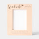 Graduation Engraved Frames with graduation cap and the word Graduate in script on the top and the name of your grad and the name of the school they graduated from on the bottom. Easy to personalize graduation gift. This beautiful etched wood photo frame for grads has a laser-engraved design. With a fold-out stand, it easily props up on any desk, bookshelf, or table. A lovely gift idea for graduating friends and family of all ages.