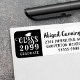 Add a special touch to your graduate's invitation, announcement and thank you stationery with custom color CLASS OF YEAR GRADUATE return address labels. The design features a fancy class year typography design and all text, graduation cap, the black rectangle and background colors can be changed to school colors or coordinating stationery colors. ASSISTANCE: For help with design modification or personalization, color change, transferring the design to another product or if you would like coordinating items, contact the designer BEFORE ORDERING via the Zazzle Chat MESSAGE tab below or email makeitaboutyoustore@gmail.com.