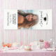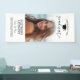 Graduation Banner that can be used as a welcome sign or photo backdrop. A trendy script and graduation cap make this a modern and minimal design with black type on a white background. Other photo options available - from 1 to 100 photos can be placed on this custom vertical graduation banner. A fun way to capture memories and share them with friends and family at your graduation party.