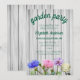 Garden party graduation with pink and white roses as well as blue and purple wildflowers.