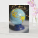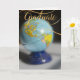 Congratulate the graduate with this elegant greeting card. The design template features a world globe on the front with the word "Graduate". Inside it reads "You've got the world on a string, Congratulations!" with a world map in the background. Designed by world renowned artist Tim Coffey.
