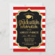 Graduation - Gold Black Red White Stripes Invitation