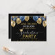 Elegant faux blue and gold glitter balloons on the top border. All text is adjustable and easy to change for your own party needs. Great elegant save the date graduation template design. High School or College.