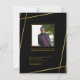 Graduation Photo Announcement/Invitation. Modern asymmetrical geometric frame in trendy faux gold foil over full bleed photo. Completely versatile do-it-yourself style layout. Easily adjust the size and placement of the photo and frame, or change the font style and placement of any custom text fields in advanced Customize mode. Optional gradient filter is included for contrast display of light text, but this can be removed or changed in advanced mode.