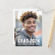 Graduation thank you postcard featuring your photo and the text "grad" and your year in a college sports font with your name or school below.