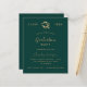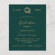 A modern, elegant graduation party invitation. A green background, golden text. Personalize and add a name, year and details.