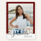 Personalized Graduation Party or Open House Guest Book with Modern Script Name and Class Of Year Overlaid on a Senior Photo on the Front Cover – shown in burgundy red, but you can change the background border color to match your school colors or grad party color scheme.